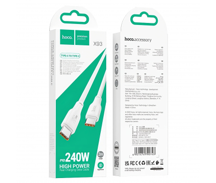 Cablu date si incarcare  HOCO X93 240W 2m Usb-C la Usb-C - ALB